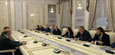 当地工夫10月22日,俄罗斯总统普京在喀山会见巴西前总统、新设备银行行长迪尔玛·罗塞芙。